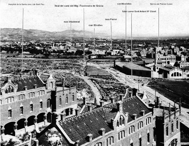 Abans, el que ara és el carrer de Sant Antoni Maria Claret no existia i la Travessera de Gràcia , valga la redundància, travessava el que desprès va ser l'hospital i acabava on ara hi ha el passatge de la Travessera de Gràcia, tot creuant l'antic camí d'Horta (ara passeig de Maragall).